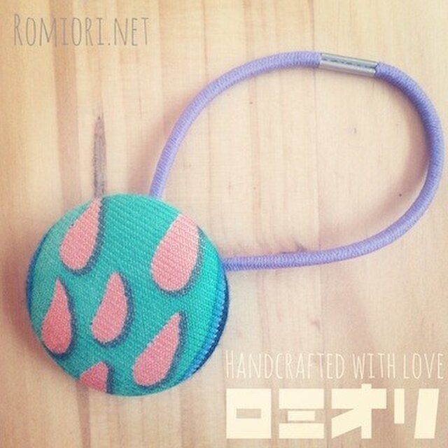 雫柄*くるみボタンのヘアゴム