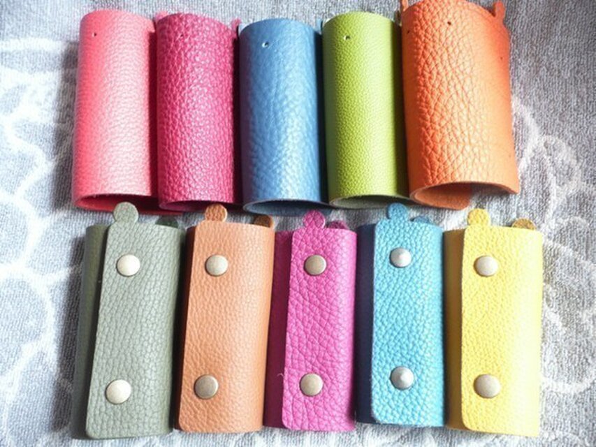 当工房で人気、オリジナルの型で制作したキーケースです。いつも品切れが多いのですが、今度はフランスの最高級革の1つ(トリヨン)が色々入りましたので制作しました。
