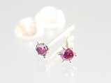 天然パープルピンク ダイヤモンドピアス K18 6本爪 スタッド