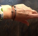 クロス型のパイライトと、カットの入った2ミリのカーネリアンを組み合わせたブレスレットです。
