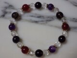 こちらはガーネット(7φ)+アメジスト(7φ)+カーネリアン(7φ)+スモーキークォーツ(8φ)+水晶(6φ 多面カット)を組み合わせたパワーストーンファッションブレスになります。