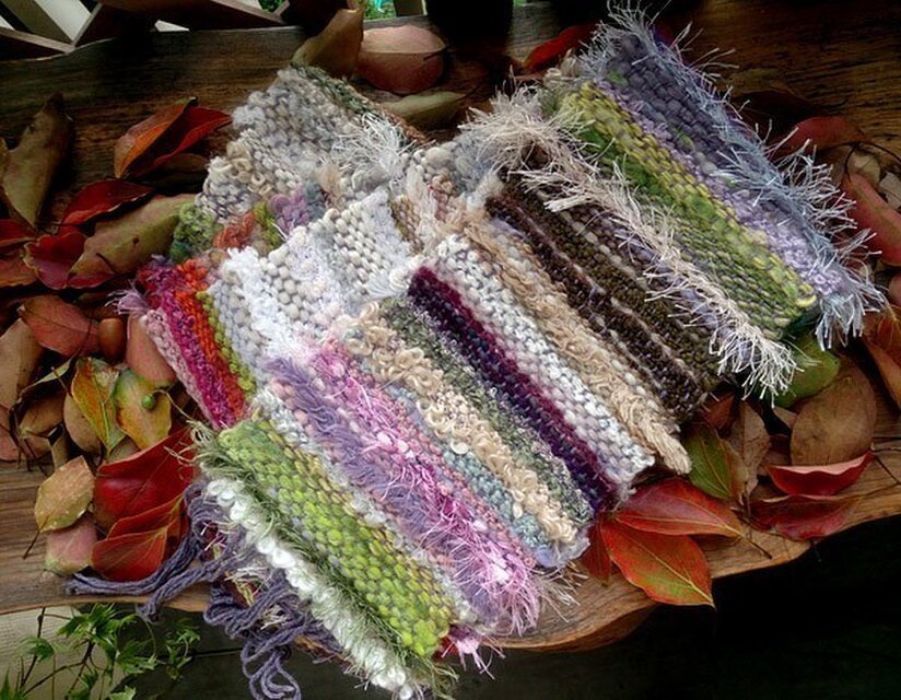 縦糸をピンと張り、色とりどりの糸や羊毛を選び、