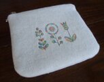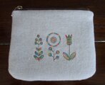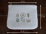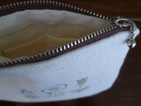 花刺繍のミニポーチ 起毛キャンバス 生成り