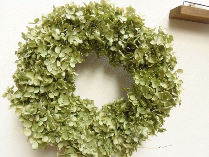 ライトグリーンのドライアナベルを使ったボリュームたっぷりのリースです