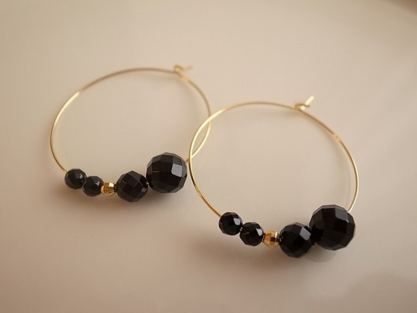 オニキスの繊細なカット面がキラキラと輝き、上品でモードな印象を与えてくれます。