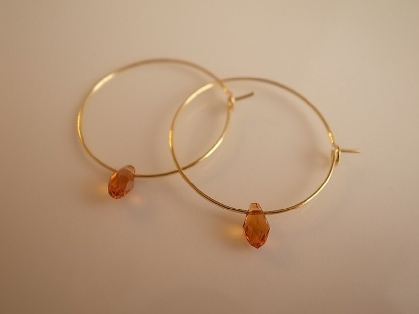 スワロフスキーエレメントを、シンプルに施したフープピアス。