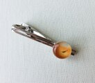 夕焼け空を飛ぶ鳥を描いた絵を、樹脂で閉じ込めたネクタイピンです。
