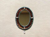 ミラーの周りをシックな色合いのガラスで囲み、継ぎ目にパールビーズを飾り、下部にガラスビーズを下げました。