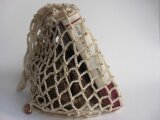 丈夫なタコ糸に金のビーズを編み込んだエコバッグです。