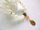 ポイントに、オレンジピンクの珊瑚とパリの教会の不思議メダイがついています。