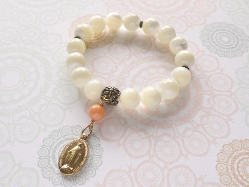迅速な配送、ありがとうございました! 「不思議メダイ」とパールの輝きがとても綺麗で 温かい印象を感じます。。。 お守りに大事にするつもりです☆ 以前に詳しく分からなかったメダイの意味具合も ちゃんと理解しました!「不思議メダイ」もパールも ツヤツヤしています。他のブレスレットとの 重ね付けもO.K.です。 ―ありがとうございました☆