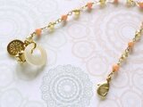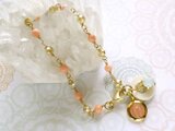 ピンク珊瑚とキラキラ輝くガラスビーズを繋げた、華奢なブレスレットです。