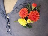 秋を感じる今日この頃です。耐水性に優れた軽量樹脂粘土で菊のコサージュを作りました。