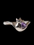 アメシストのハートカットの石をねこちゃんが持っているデザインです。