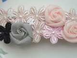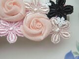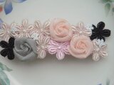 ・コットンリボンのバラとレースモチーフのバレッタです。