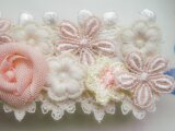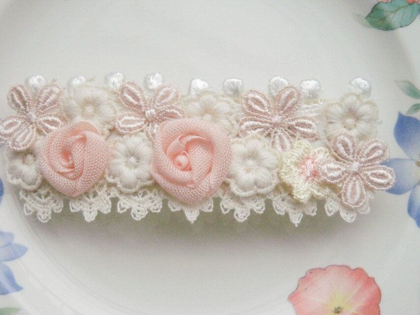 ・コットンオーガンジーのバラと5種のレースモチーフのバレッタです。