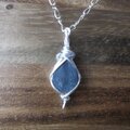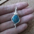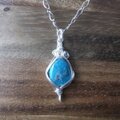 どことなくスモーキーな色あいが個性的なターコイズをシルバーのアーティスティックワイヤーで