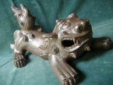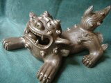 シーサーは、スフィンクスや中国の石獅子、日本本土の狛犬と同じ、源流は古代オリエントのライオンがシルクロードより伝わった、沖縄の家の屋根や門に見られる魔除け、守り神で、「獅子(しし)」を沖縄方言で発音したものです。本土狛犬の様式を受け、阿吽像一対で置かれ、口の開いたシーサーが雄で右側に置き、福を招き入れ、口を閉じたシーサーが雌で左側に置き、災難を家に入れないといわれ、毛並みの渦巻きには魔除けの役割があるそうです。