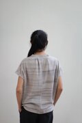 おもしろいデザイン、着やすさを考え、胸元と後ろ身頃に小さなタックを入れています。