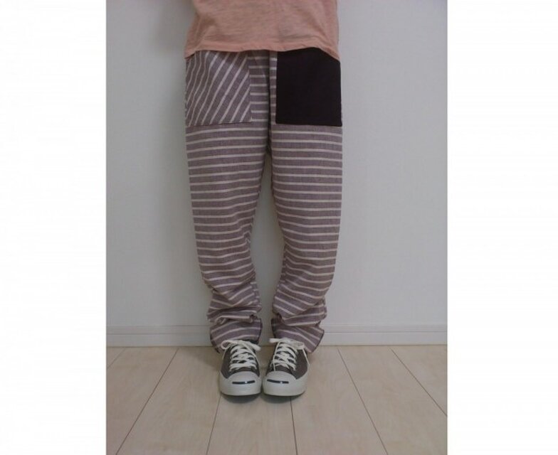 わがままなお願いをしましたが、丁寧に対応していただきました。 起毛した柔らかな生地で、とても着心地がいいです。 ストライプなど大胆な柄合わせですが、同系色でまとめてあるので落ち着いた雰囲気で、(アラフィフなんですけどね)抵抗なく着ることができます。 大きなポケットもありがたく、大活躍のパンツになると思います。
