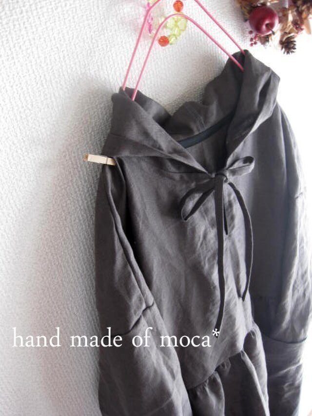 【受注製作】W50長袖フード付きリネンワンピース★チャコールグレー