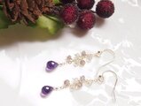 アメジストをメインにラブラドライト、プレナイトを組み合わせたシックな印象のピアスです。
