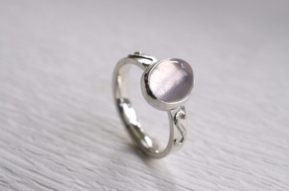 天然ローズクオーツを使用した、シルバー925製のリングです。