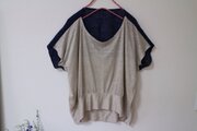 リトアニア産ニットリネン100%生地と先染めワッシャーの上質リネン100%の生地で配色トップスを作りました。