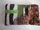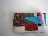 様々な布をミシンでたたいて作った一枚の布を使用しています。
