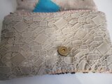 クラシックなワンピースの生地にニットのモチーフやビーズなどでごちゃごちゃ飾りました。