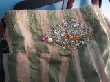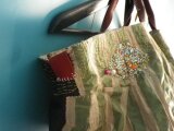 バッグのサイド部は革のかけらで錘を付けて、アクセントにしています。