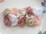 ・コットン5色のニュアンスカラーのバラと玉レースモチーフのバレッタです。