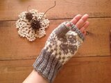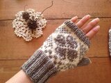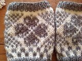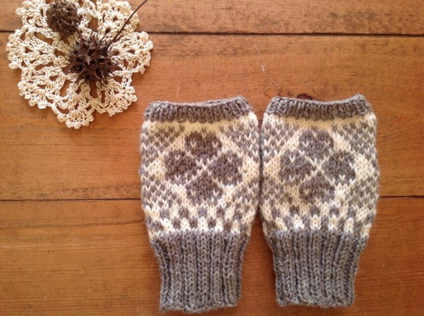 グレーと生成りの優しい糸で北欧風伝統柄を編み込みました