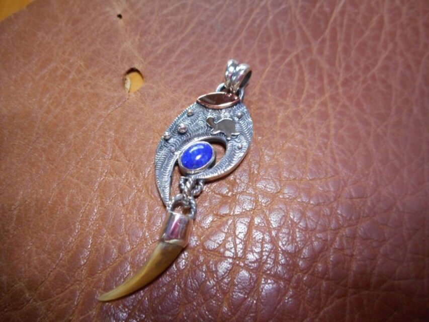 素材:純銀、銀950、銅、ラピスラズリ、カメ爪