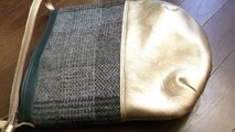 ハリスツイードのバックはよく出回ってますがゴールドレザーを合わせたものはあまり見ないので作ってみました。冬の装いのアクセントになりますよ。