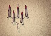 5本のキャンドルにしずく型のグラスビーズを下げてシャンデリアにしてあります。