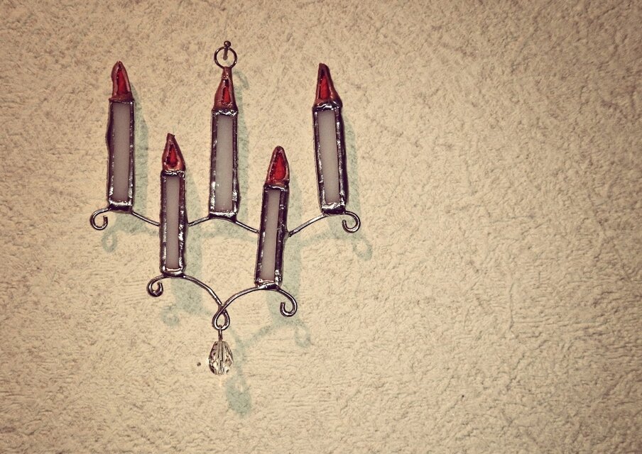 ステンドグラスで作ったキャンドルのオーナメントです。