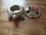 7色 + 2色 の釉薬で塗り分けた カラフルでめでたい亀の鉢です。