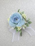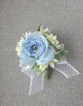 水色のシルクデシンの巻き薔薇が甘く上品です。