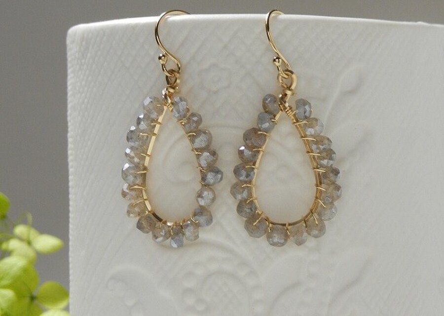 ドロップフレームにシルバーコーティングされたラブラドライトを豪華にぐるっと一周させました♪存在感がしっかりありながらシンプルなデザインなので、お洋服を選びません!!