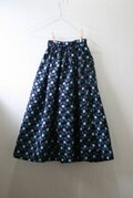 藍染の絣生地でゴムスカートを作りました。ゴムを通すことで自然なギャザーができるシンプルなスカートです。このスカートは和風の印象を残しながらも、気軽に着ていただけて、よりカジュアルにお楽しみいただけると思います。綿素材なので、ご家庭でお洗濯していただけますが、色落ちしますので単品手洗いをお勧めいたします。