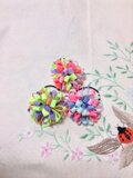 ネオンカラーのリボンをポイントにして作ったヘアゴムです。