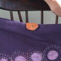 パープルの綿麻生地を切り抜き、その周りをグラデーションの刺し子糸でちくちく。