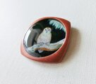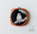 濃紺の背景にふくろうを描いた絵(原画)を樹脂でとじこめました。