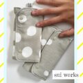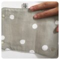 今回の生地は、落ち着きのあるグレーに、白い絵の具でラフに水玉が描かれているような模様がプリントされています。