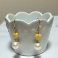 癒しの効果があると言われているイエロージェイドのハートの形をした石とコットンパールを組み合わせました。