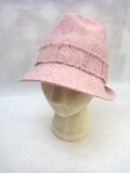ピンクのウールツイードで中折れ風に...。可愛い感じに被って頂けると嬉しいです。