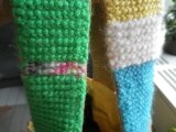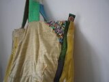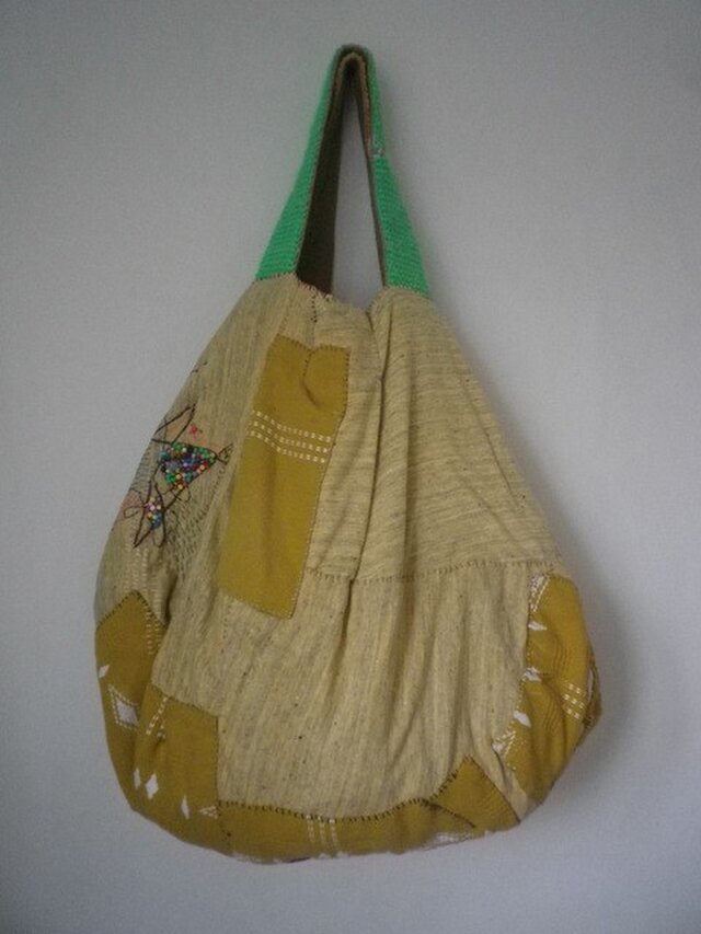 黄色に落書きのような刺繍をし、ビーズなどで彩りました。