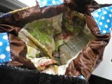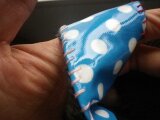 持ち手はもこもこの毛足の長い生地に、裏側は補強のため、コーティング仕様の厚手の生地を当てています。