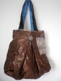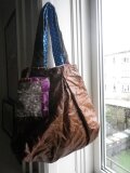少し光沢のある、レザー調の生地を使用して作ったバッグです。本物のレザーではありません。